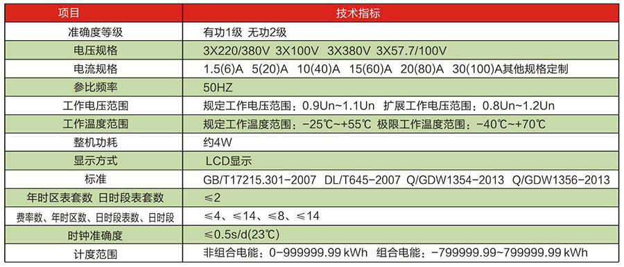 1、计量A、B、C三相的正反向有功和四象限无功总电量:电能表可支持四种费率(尖、峰、平、谷)