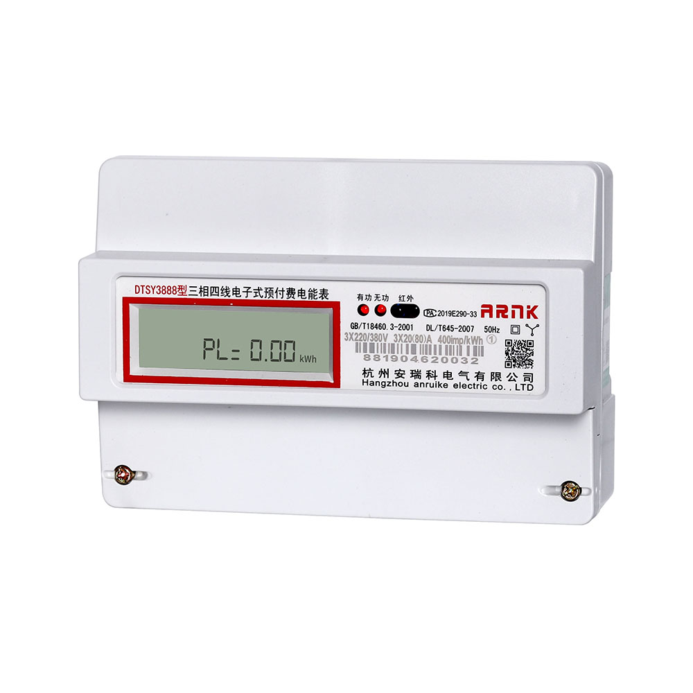 三相四线(新型导轨式)多功能电能仪表(预付费)(以下简称电能仪表),是为了适应电网改造设计开发的导轨式有功预付费电能仪表。它具有较高的准确度和可行性。三相静止式电能表技术要求,是变电站或电厂理想的选择,亦适合输配电或配网自动化用表。本产品可供计量参比频率为50Hz电网中的三相交流有功电能,并能进行正、反向电能计量和红外及RS485通讯功能。其特点是精度高、可靠性好、宽负荷、低功耗、误差曲线平直、抗干扰能力强。该仪表具有红外及RS485购电功能。