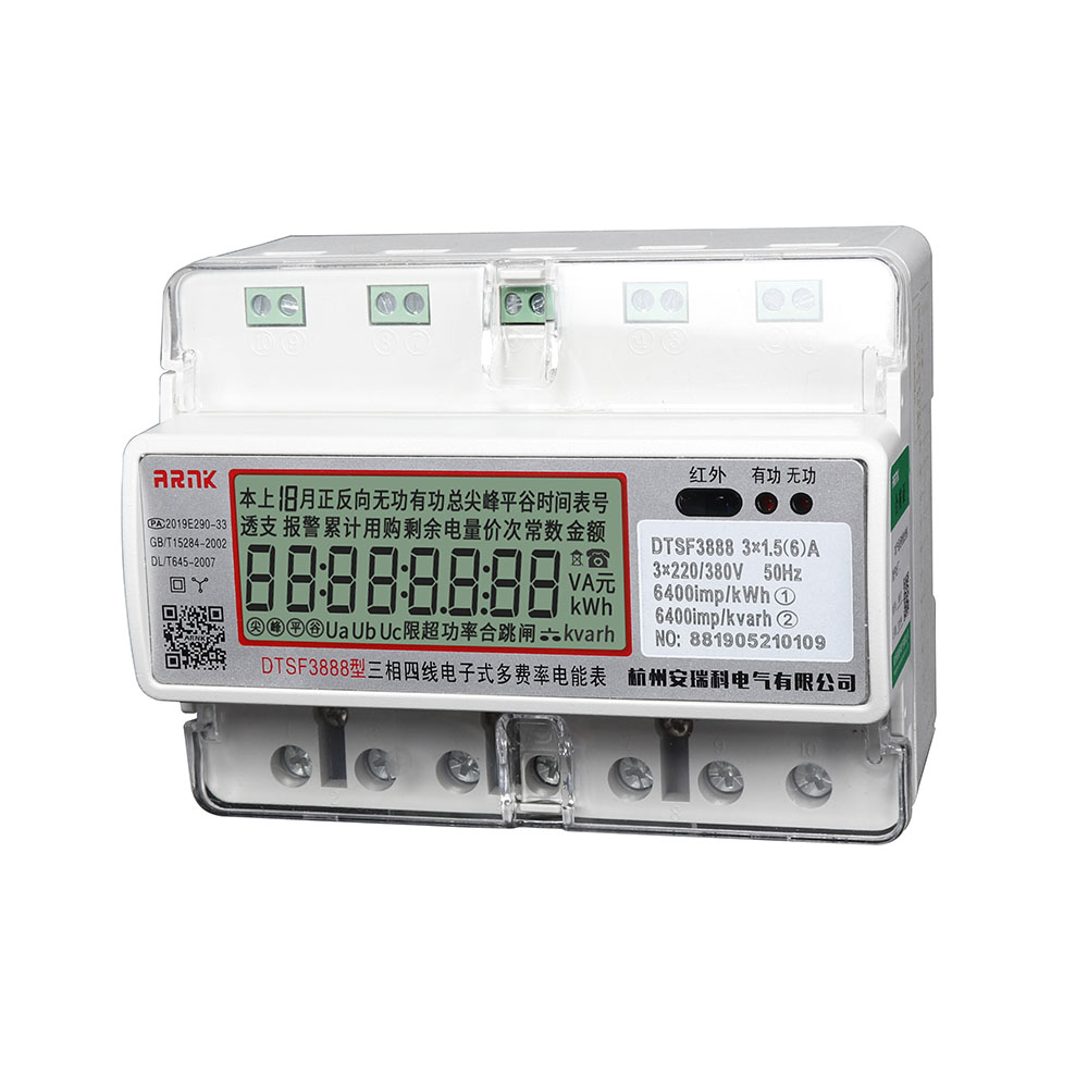 三相四线(新型导轨式)交流有功多功能电能仪表(多费率)(以下简称电能仪表),是为了适应电网改造设计开发的导轨式有功多费率电能仪表。它具有较高的准确度和可行性。本仪表采用国际先进的超低功耗大规模集成电路技术及SMT工艺制造的优良产品。对三相静止式电能表技术要求,适合输配电或配网自动化用表。本产品可供计量参比频率为50Hz电网中的三相交流有功电能,并能进行正、反向电能计量和红外及RS485通讯功能。其特点是精度高、可靠性好、宽负荷、低功耗、误差曲线平直、抗干扰能力强。