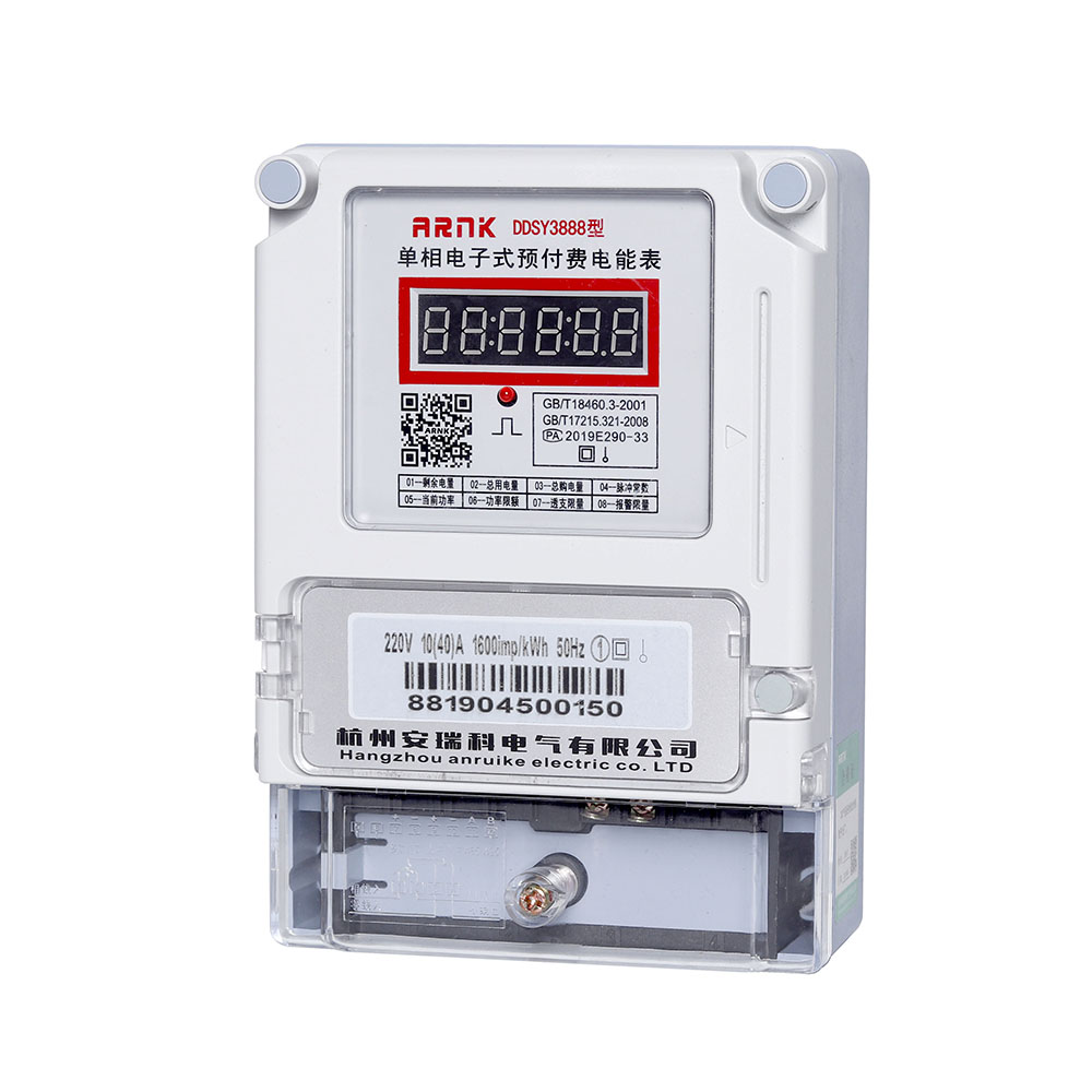 DDSY3888型单相电子式预付费电能表(数码管型单相电能表)。主要适用于实行先付费后用电的供电制度的单相居民用户,可实现电能计量、电量预购,最大负荷限制智能化收费控制、防窃电管理、用户信息综合管理等多功能的新一代产品。该电能表示当前改革用电体制,实现电能商品化,解决收费难。促进合理用电,节约用电的理想电能计量产品。
