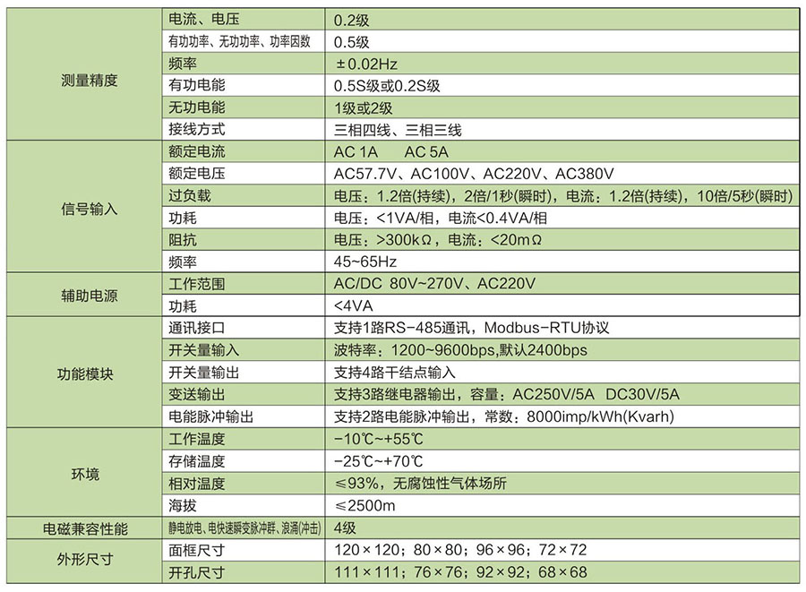 1.高精度测量三相电压、三相电流、有功功率、无功功率、视在功率、功率因数、评率等电参量;