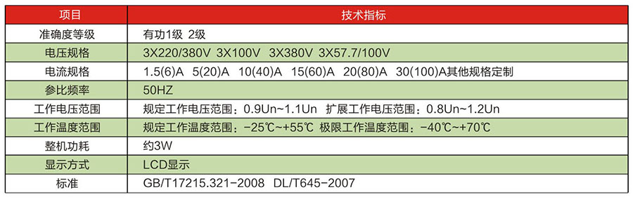 三相电子式电能表(以下简称电能表),是对需要进行有功电量考核的企业、变电站或电厂理想的选择,亦适合输配电或配网自动化用表。本产品可供计量参比频率为50Hz电网中的三相交流有功电能表,并能进行正、反向有功电能计量和红外及RS485通讯功能。其特点是精度高、可靠性好、宽负荷、低功耗、误差曲线平直、抗干扰能力强。